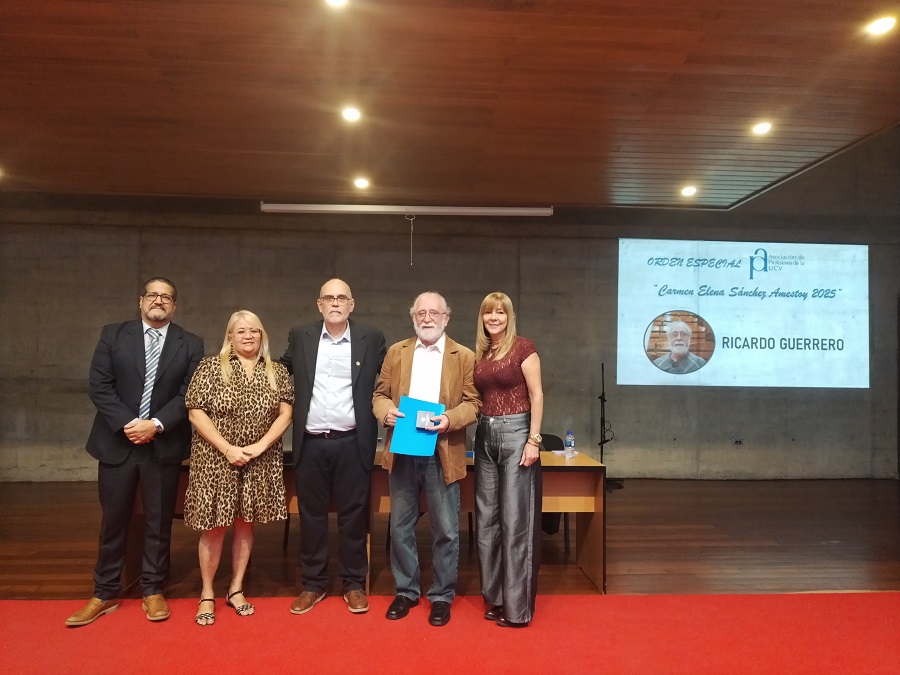 En el marco de la celebración del Día del Profesor Universitario, el 5 de diciembre, se llevó a cabo la entrega de la Orden Carmen Elena Sánchez Amestoy, entregada por la Asociación de Profesores de la Universidad Central de Venezuela (Apucv), en un acto celebrado en el Auditorio Naranja de la Facultad de Ciencias Económicas y Sociales. El Prof. Ricardo Guerrero, recibe la Orden Carmen Elena Sánchez Amestoy. Durante el evento fueron distinguidos tres profesores de la Facultad de Ciencias: la Profa. Elizabeth Gordon y el Prof. Ricardo Guerrero, pertenecientes al Instituto de Zoología y Ecología Tropical, quienes recibieron reconocimientos por su Amplia Trayectoria y la Profa. Nereida Carrión, de la Escuela de Química, por haber sido reconocida con el Premio Especial a la Mujer de las Ciencias. Asimismo, la Apucv entregó botones por años de servicio a varios profesores de la Facultad de Ciencias, entre quienes se encuentra el Decano, Dr. Ernesto Fuenmayor Di Prisco, por 30 años de servicio. Ver esta publicación en Instagram Una publicación compartida de Coord. Extensión Ciencias UCV (@noticienciasucv) Navegación de entradas Dra. Evelyn Zoppi: Pionera de la planctología en Venezuela
