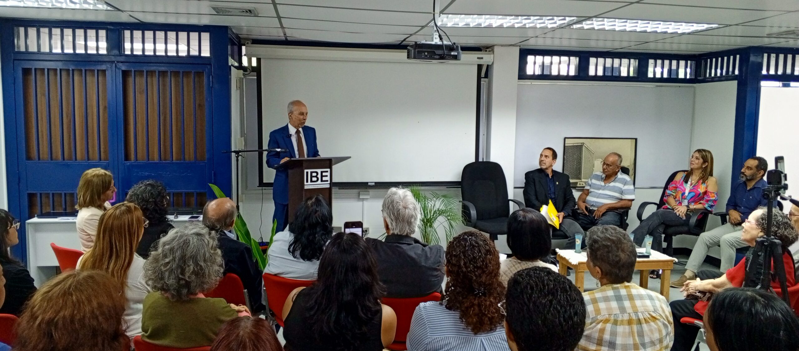 La actividad inició con las palabras de apertura de la Profa. María Lorena Márquez, directora del instituto, quien dio la bienvenida a los asistentes y dio paso al conversatorio: IBE: 30 años de historia, el cual contó con las participaciones de los profesores: Eva de García, Elizabeth Merentes, Blas Dorta, y Gilberto Payares.